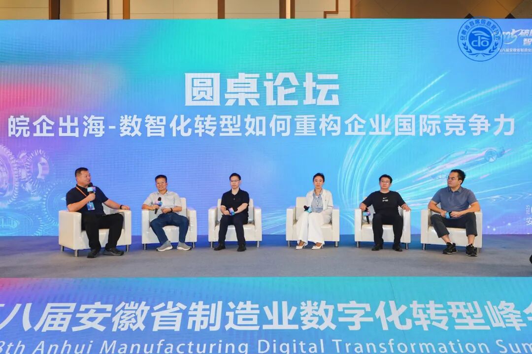 峰会进入高潮环节——圆桌对话。青岛CIO联盟秘书长耿峰担任主持人,国轩高科(002074)管强、埃夫特智能余同大、巨一科技孔丽、合肥荣事达陈勇、飞书陈立尧等嘉宾围绕“皖企出海-数智化转型如何重构企业国际竞争力”展开热烈讨论。分享了数智化在供应链协同、跨文化管理、合规风控、市场拓展等方面的应用经验,精彩的对话引发全场共鸣,为皖企出海提供了宝贵思路。